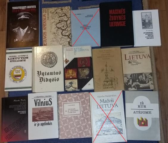 Neimantas R. Rytai ir Lietuva 1 € Kryževičius V. Lietuvos privilegijuotieji miestai (17-18 a) 1 € Lietuva Stalino ir Hitlerio sandėrio verpetuose 0,50 € Venckus R. Kai sutemos dengė baltąsias lankas 1 € Vilnius ir jo apylinkės 1 € Vilniaus ir jo apylinkių čiabuviai 1 € Iš kur atėjome 0,80 €