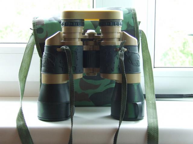 „Forte“ firmos, kareiviškos spalvos, yra komposas, 7*50WA coated optics 120m/1000m.