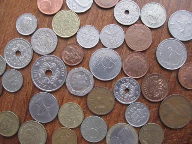 Ivairiu saliu pinigines monetos.