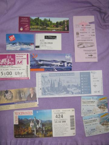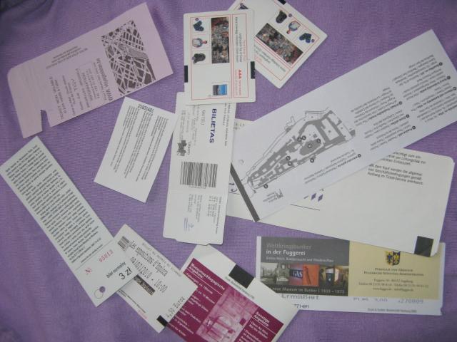 pagrinde iš užsienio, visi iš Europos, vos vienas kitas iš Lietuvos. Bilietai į įvairius muziejus, turistų lankomas atrakcijas, bilietai orouosto shuttle, parodoms, parkams .ir t.t. Dabar abejose nuotraukose tie patys tik kad apversti, jei būtų mainams, tai mainyčiau šuios, o jei į kokį didesnį daiktą, tai galėčiau pridėti ir įvairių kitokių bilietų iš užsienio (tokio pat pobūdžio).
