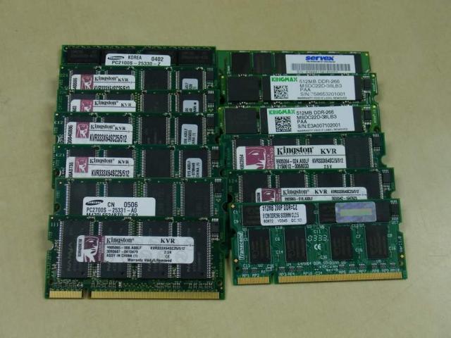 RAM kiekis ir talpos nuolat kinta. Klauskite! **DDR 2 ** Samsung 2GB (PC2-6400S-666-12-E3) Samsung 1GB (PC2-6400S-666-12-A3) 2 plokštelės Hynix 512MB DDR II (pc2-4200s-444-12) 3 plokštelė Hynix 512MB DDR II (pc2-3200s-333-12) 1 plokštelė Apacer 512MB DDR II (PC2-5300 CL5) 1 plokštelė ** DDR I ** Hynix 256MB DDR I (333mhz cl2,5) 3 plokštelė **SDR** DELL 512MB (PC133S-333-542-Z) 1 plokštelė (labai reta) Simpletech 128 MB (100mhz, CL2) 1 plokštelė 128 MB (100mhz) 1 plokštelė ** Kaina sutar