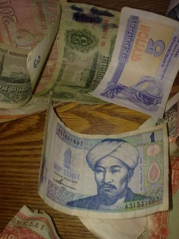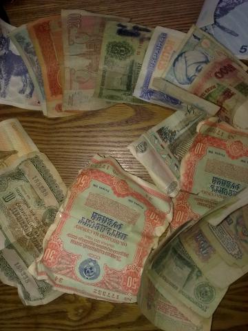 Ivairus pinigu banknotai.
