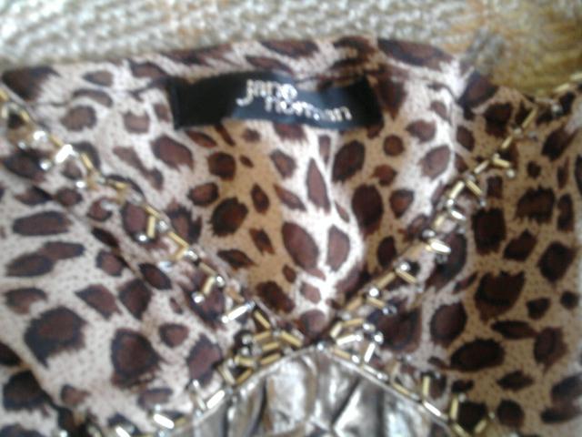 10 dydžio tigrinė palaidinė, petnešėlės reguliuojasi, firma Jane Norman, ties krūtine siuvinėta karoliukais