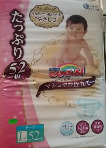 Vienkartinės sauskelnės GOON L d. 9 -14kg. 52 vnt. Kaina - 17.00€. Galiojimas 2018.02.24 VILNIUS., Šeškinės raj., SIUNTIMAS Į KITUS MIESTUS, 862174484., violeta0623@gmail.com