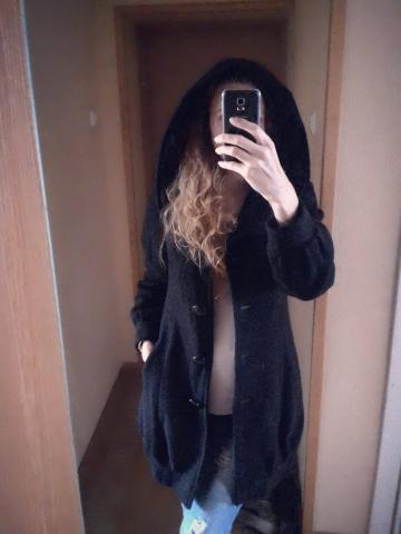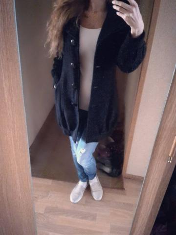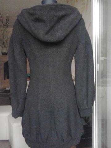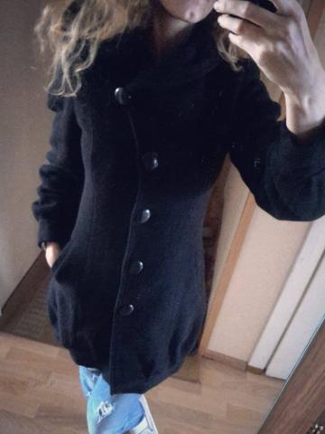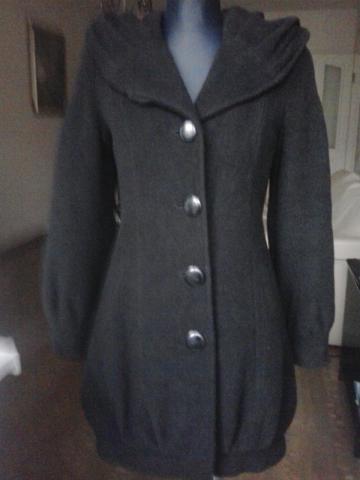 Juodo audinio jaunatviškas puspaltis. Sudėtis: 62% Virdžinijos vilna, 22% Pa, 16% Mochera. Pamušalas 100% Poliesteris. Išmatavimai: ilgis 85 cm, rankovės 64 cm, krūtinės ap. 45 cm x 2, pečiai 39 cm. Jis tiktų nešiojančioms S dydžio rūbus.