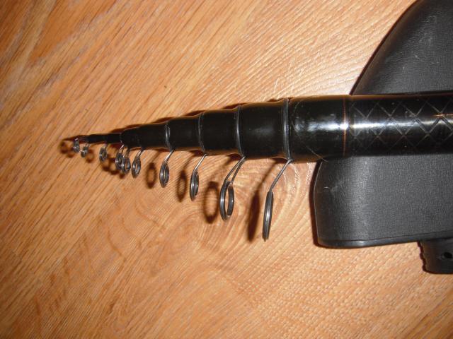 labai tvarkinga,mazai naudota maximum 5 kartus,anglies pluosto,lengva ir tvirta,tamsiai juoda,7m. ilgio,10ziedeliu,patogus ir tvirtas rites tvirtinimas,labai jautrus meskerykotis.