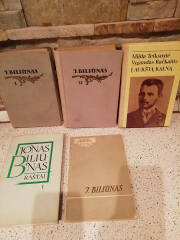 Raštai 1 tomas 1980m. 2€, Raštai 1 ir 2 tomai 1954m. 5€, J.Biliūnas (mokinio biblioteka) 1957m.1€ Į aukštą kalną (biografinė apybraiža) 1986m. M.Telksnytė, V.Račkaitis 2€