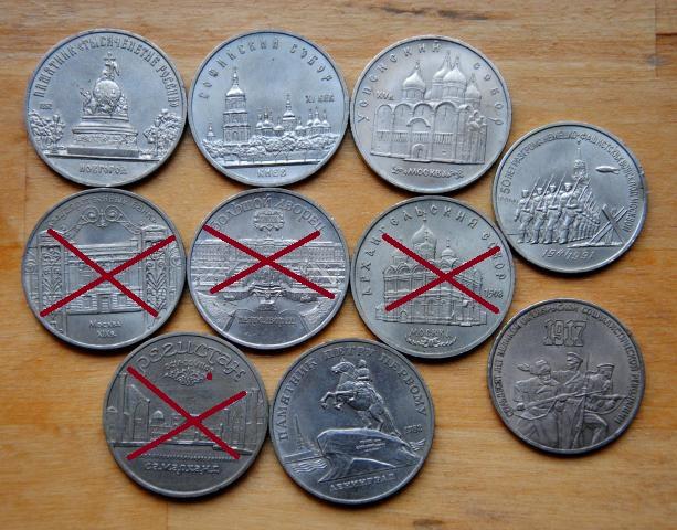 jubiliejiniai tsrs 5 rubliai: 10 skirtingos monetos