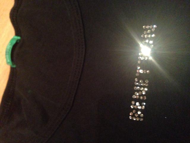 Grazi juoda benetton palaidine su blizganciu uzrasu. Defektukas pabalteja ties pazastim