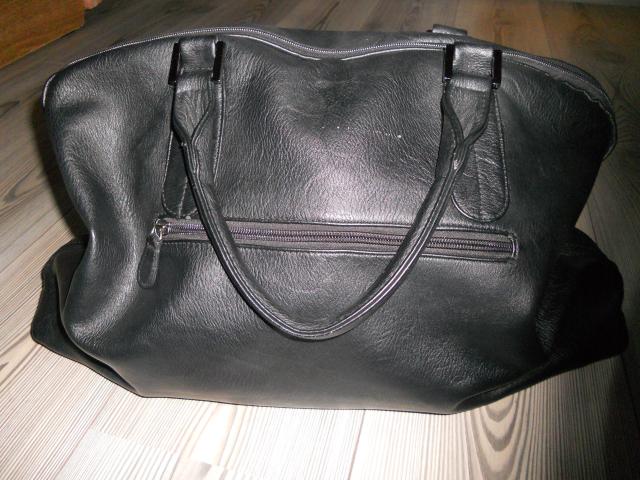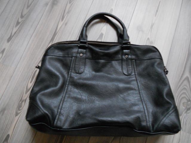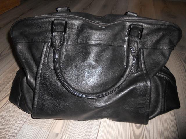 Juoda laaaabai talpi rankinė (A4 formato lapai kuo puikiausiai telpa). Aukštis - 34 cm, plotis - 50 cm, rankenų aukštis - 14 cm.