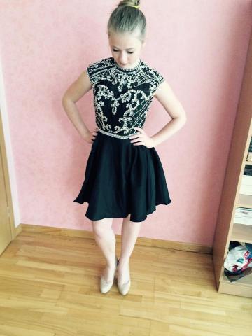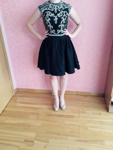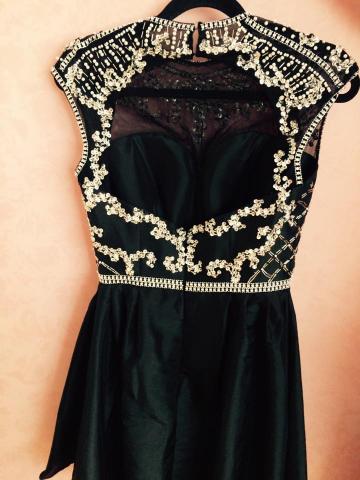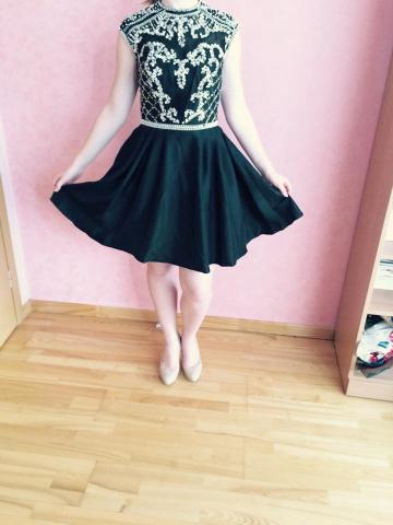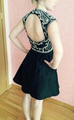 Trumpa juoda išsiuvinėta suknelė, Sherri Hill dizaino, be defektų, apsirengta tik namuose pora kartų. Dydis 36/38. Tinkama vasarai, pavasariui. Pirkau ją išleistuvių proga, bet jose negalėsiu dalyvauti, taigi tenka parduoti. Pirkau už 220€, bet siūlau pradinę kainą 180 ir galima kažkiek dėrėtis :).