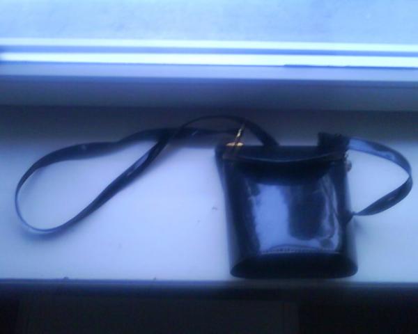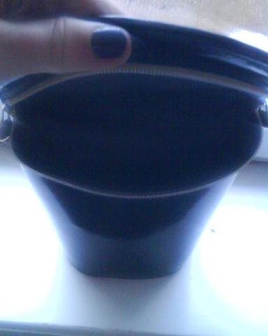Juoda, lakuota tašytė su auksiniu užtrauktuku