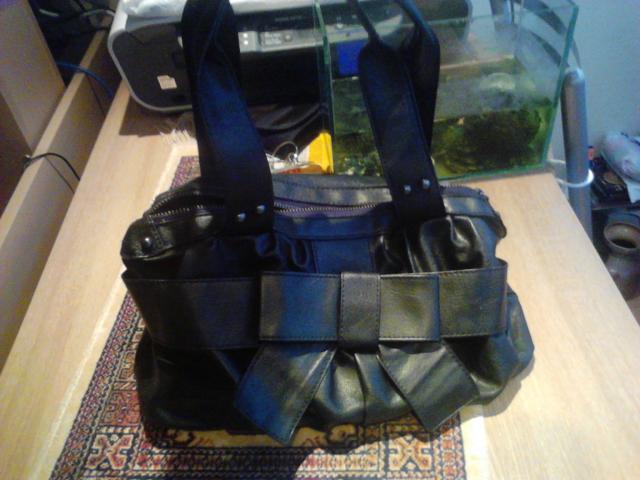 Nedidele juoda rankine is terranovos, su kaspineliu