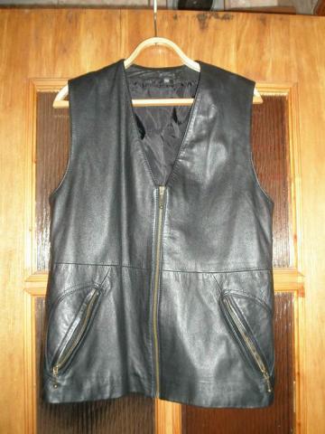 Juoda odinė liemenė su užtrauktuku, poilgė.
