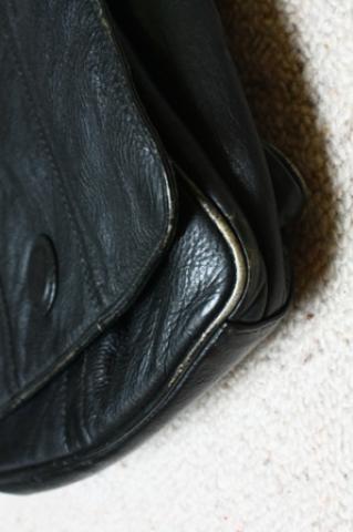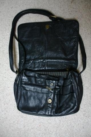 nesuplyšus tik kraštai kiek aptrinti bet šiaip tokia vidutinio dydžio bet labai talpi tašė. su daug skyrių pamušalas dryžuotas.