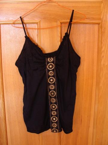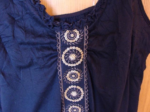 būklė ne puiki, bet gera. tiesiog pasibumbuliavus kai kur maikutė :) dydis parašytas XXL, bet vėlgi, universalus. pati nešioju L arba M/L ir man gerai. na, tik šonuose gal šiek tiek laisviau medžiaga krenta, tačiau normaliai atrodo. bet tiks ir tiems didesniems dydžiams, bent jau XL. išilgai maikutės priekyje eina raštai išsiuvinėti žvyneliais :)