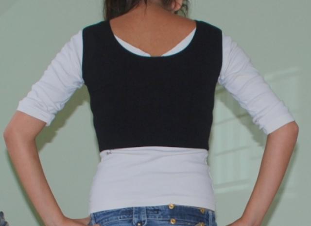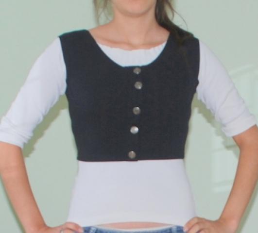 Juoda trumpa maikutė, galima nešioti ant kokių nors bliuskučių labaig ražiai atrodo. :) XS - S dydis.