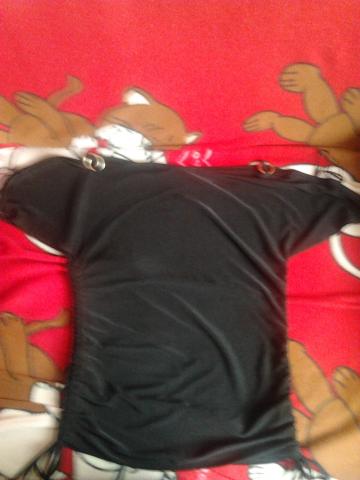 juoda palaidine. labai graziai priglunda prie kuno ir lieknina :) rankoviu sonai susirisa, pacios palaidines sonai susitraukia