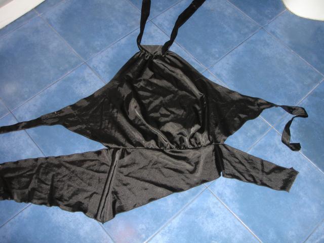 Palaidine idealios bukles, juoda blizgi medziaga lyg satinas. Zinomo Italu dizainerio pirka uz kosmosine suma uz Lietuvos ribu. Kirpimas labai idomus, palaidine risasi dvejose vietose: ties kaklu ir klubais, nugara lieka nuoga, kas ypatingai seksualiai atrodo vasara einant i kluba. Dydis s-m