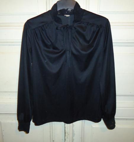 Labai lengva, juoda palaidinė-marškinukai su nėrinuku ant apykaklės ir riešų.