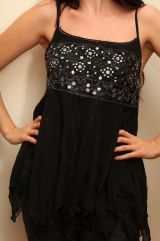 Dydis parašyta S, bet puikiai tinka ir M. Tinka ~90cm. krūtinei. O po krūtine gražiai krenta ir paslepia trūkumus, jei tokių yra. ;)