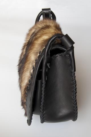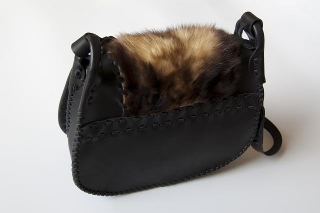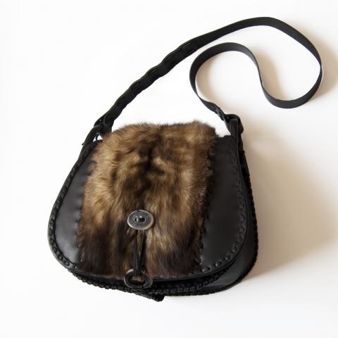 Juoda rankinė dekoruota kailiu