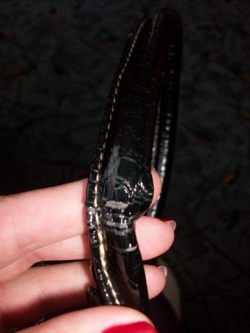 grazi rankinė, blizgi, defektukas matosi, bet kai nesioji tai net nesimato nes tik išskėtus matosi itrukimai :)
