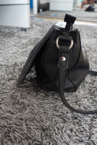 Juoda Reserved rankine. Galima nesioti paprastai arba per peti. Yra du skyriai. Ir vidine kisenele. Rankine uzsitraukia ir uzsisega. Ismatavimai: ilgis 32 cm aukstis 24 cm plotis 12 cm. Didesnė nei atrodo nuotraukose. Keliose vietose odelė nusilupo, bet praktiškai nesimato.