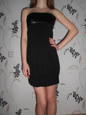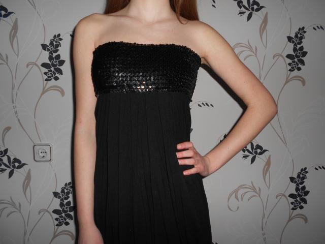 Suknyte su juodais zvyneliais ties krutine. Tikrai nekrenta,nes ten padaryta guma :) Atrodo labai elegantiskai :)