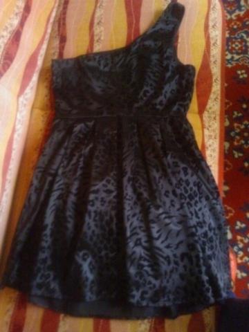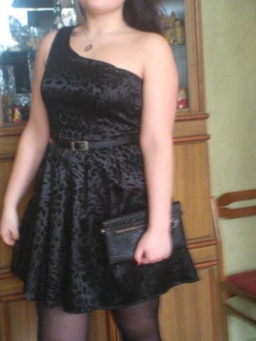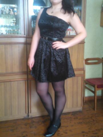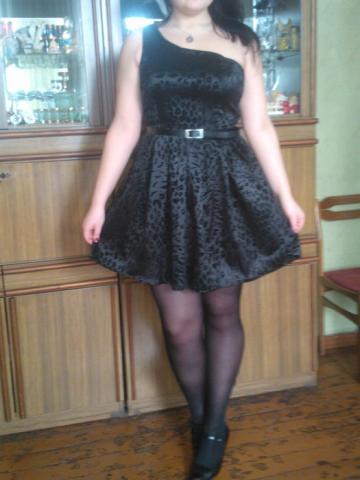 Labai graži juoda ,trumpa suknelė su įdomiais raštais. Nešiota tik vieną kartą.Suknelė yra su viena petnešelė,tad atrodo tikrai seksualiai;) Parduodama be dirželio.Juosmens ilgis 42x2cm,o ilgis nuo petnešėles 85cm.Nuotraukoje suknelę dėvinčios merginos ūgis 176cm. Suknelės apačia yra pūsta ir laisva,tad tikrai tiks bet kuriems klubų apimtims. O viršus tiktų maždaug 42-44 dydžiui