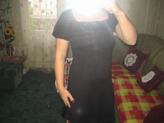 Juoda trumpa,iki keliu suknyte su pustomis rankovemis.Tinka kokteiliu vakareliui ar kokiai progai.Tinka turincioms didenius klubus,nes nuo juosmens labai graziai krenta. Idealiai tinka 38 dydziui.