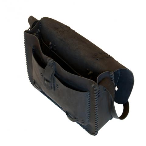 Natūrali 2 mm storio oda. Matmenys 34 x 26 x 10 cm (telpa A4 formato segtuvas). Trijų skyrių, papildomas skyrelis telefonui, prisiūtas karabinas raktams prisegti. Reguliuojamo ilgio rankena. Oda impregnuota aliejumi.