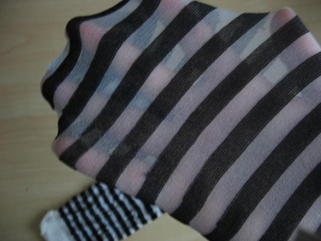 Juodai baltai dryžuotos kojinytės nemūvėtos