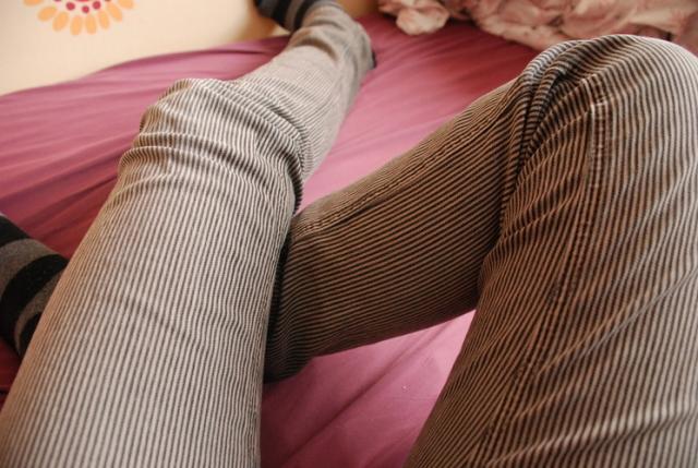 juodai/pilkai dryžuotos kelnės, Stradivarius 38