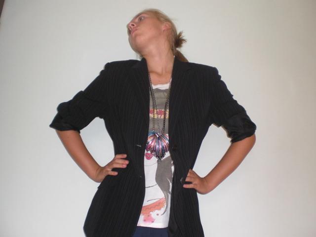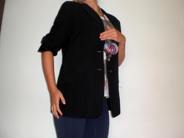 S dydžio, stilingas švarkas/bleizeris, juodas su neryskiom vertialiom linijom