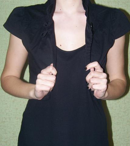 Juodas bolero tinkantis tiek prie suknelės, tiek prie maikučių. Dėvėtas vos kelis kartus.