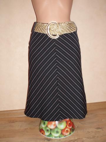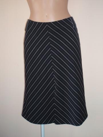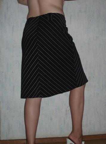 Juodas klasikinis sijonukas, nugaroje užtraukiamas užtrauktuku, priekyje yra skeltukas. Yra mažas defektukas: užtrauktuką reiktų persisiūti arba užtraukti atsargiai, kadangi yra užtrauktuko šone skylutė 0,3cm dydžio, tai traukiant neatsargiai isiveliai siūliukai, tačiau užtraukiant lėtai - užsitraukia gerai. Parduodamas be diržiuko. Rašo dydį 40. Ilgis sijonuko ~ 60cm, per liemenį ~ 78cm, per klubus ~ 98cm (matuota nuo viršaus ~24cm), sijonuko apačios plotis ~ 116cm. Dydis: 40 / 12 / M Sudėtis: