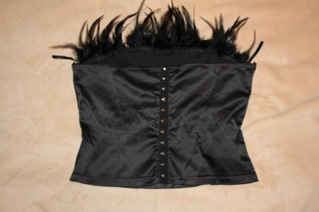 juodas korsetas su plunksnomis