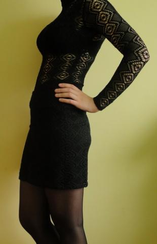 viršutinė dalis permatoma, o sijonas su pamušalu. audinys puikiai tamposi, taigi dydi nuo 36-40