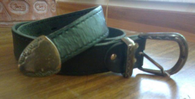 Juodas odinis diržas su tvirta sagtimi. Nenunešiotas tik sagties kraštelis apsitrynęs, bet nematomai. Labai kokybiškai, tikrai ilgai tarnaus.