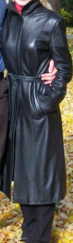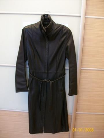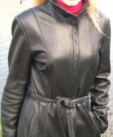 Juodas geros būklės natūralios odos paltas (man šiek tiek už kelių). Geros kokybės.