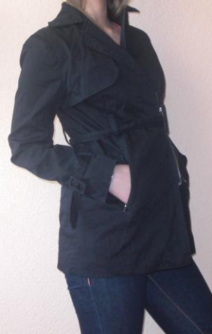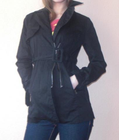 labai grazus paltukas trumpas pirktas Londone ;) dydis xs/s :) Juodas, po krutine susisega dirzas, rankoviu galuose taip pat toki grazus dirziukai 3ft :) Labai stilingas, plonas , puikus pavasary,