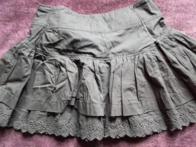 Juodas truputi pūstas sijonas. Dabar susiaurintas iki S dydžio, bet jei viską išardžius, tai gal ir L tiktų. (ant etiketės užrašyta 14eu dydis). Norėčiau ~20lt.