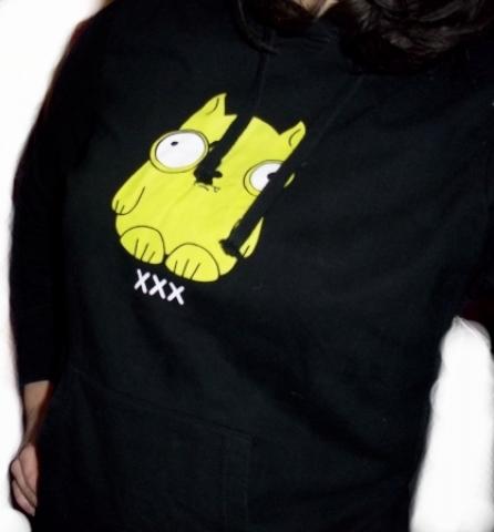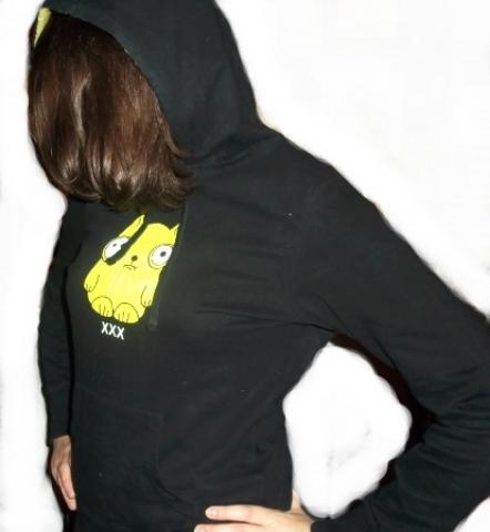 Truputį nešiotas, bet be didesnių defektų. Su kapišonu: jis išorėj juodas, iš vidaus šviesiai salotinis. Turi kengūros kišenę. Tas žvėriukas ant priekio fotkėj atrodo lyg geltonas, bet iš tikrųjų toks salotinis, kaip kapišonas. 38 dydis