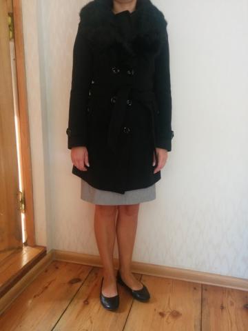 Naujas,svelnios medziagos, su nuimamu kailiuku dailus paltukas. Ismatavimai:Krutine 44-45cm, rankoves ilgis-57, peciai-37, palto ilgis-83.