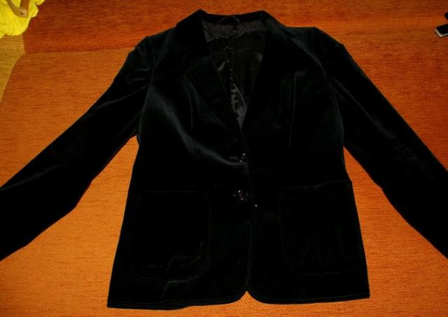 Juodos spalvos, barhatinės medžiagos švarkelis, galima nešioti ir kaip striukytę. Galima derinti prie betkokio stiliaus drabužių, nes yra praktiškas, niekada neišeinantis iš mados.