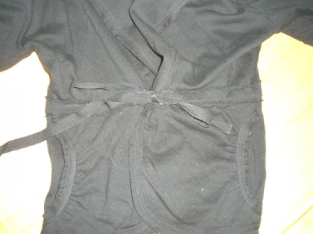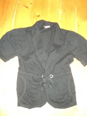 s-m dydzio. juodas prieky surisamas svarkelis. trumpomis rankovemis.