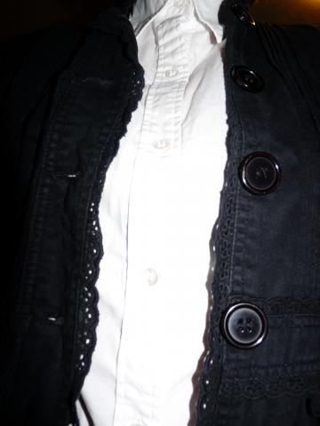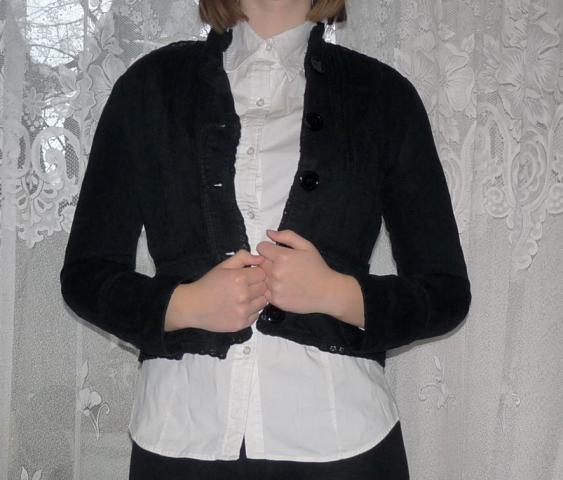 Labai mylėtas švarkelis, nešiotas, tačiau nenunešiotas :) Juodas, su didokom sagom, gali būti ir formalus ir kasdieniškas. Nėra ilgas, kai susisega atrodo truputį įliemenuotas, labai gražus :)