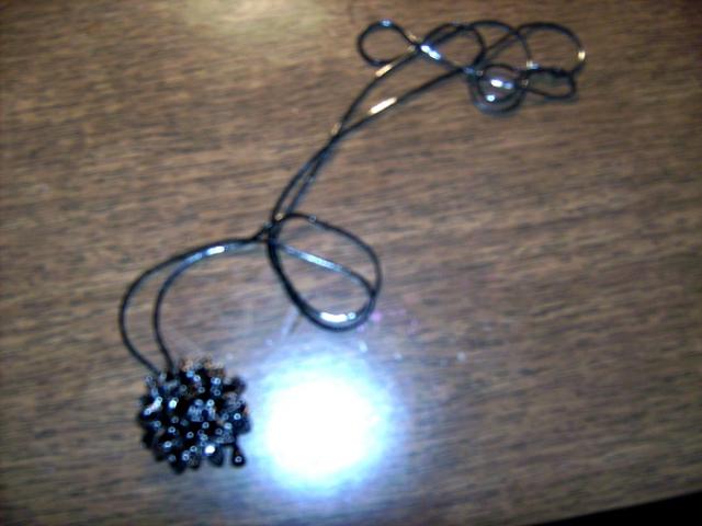 Juodas, zibantis, blizgantis pakabukas. Ilgis reguliuojasi