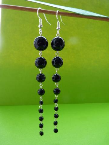 Juodi, apvaliais karoliukais auskarai 13 lt